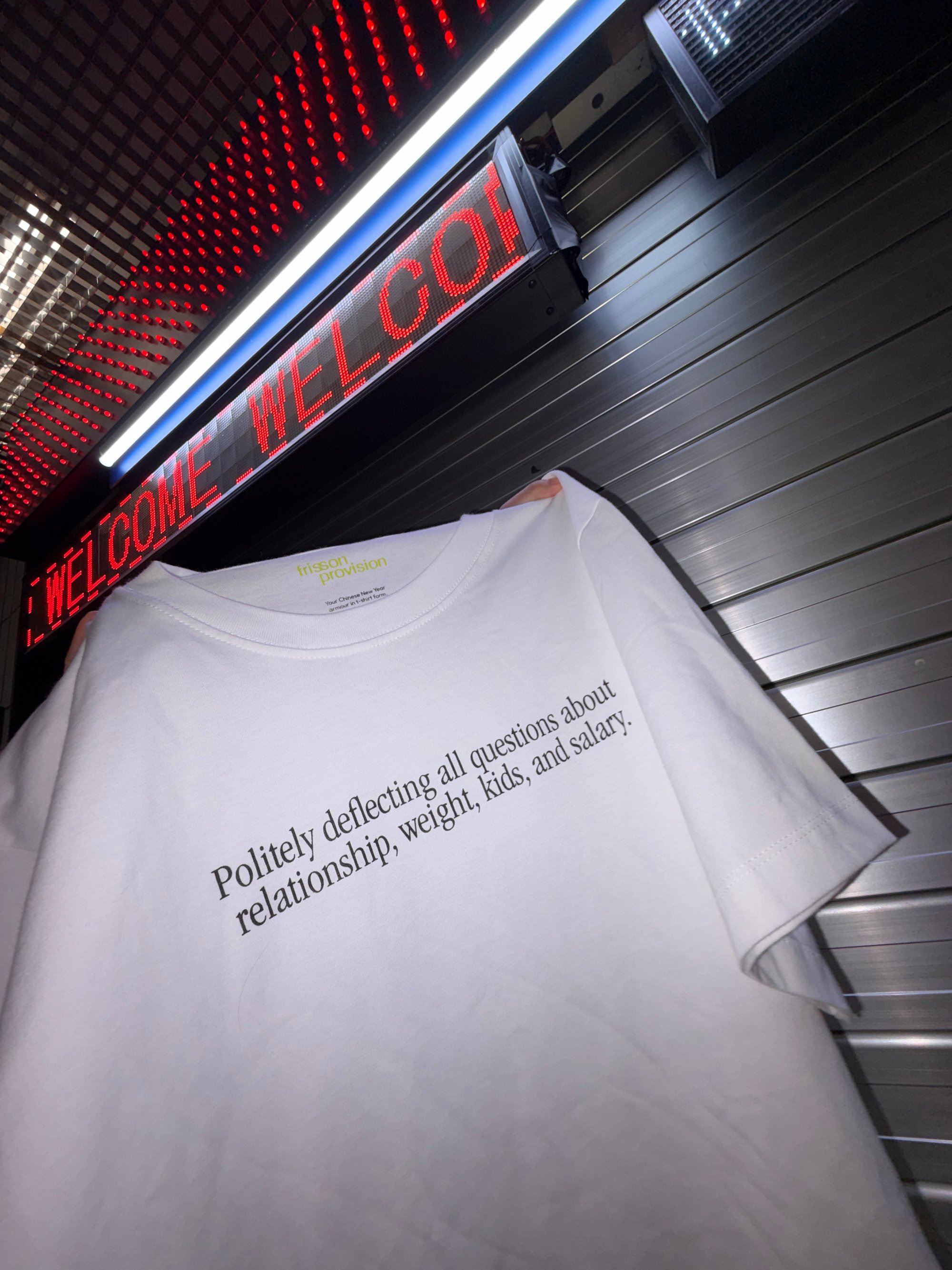 Front: Politely deflecting all questions about relationship, weight, kids and salary.